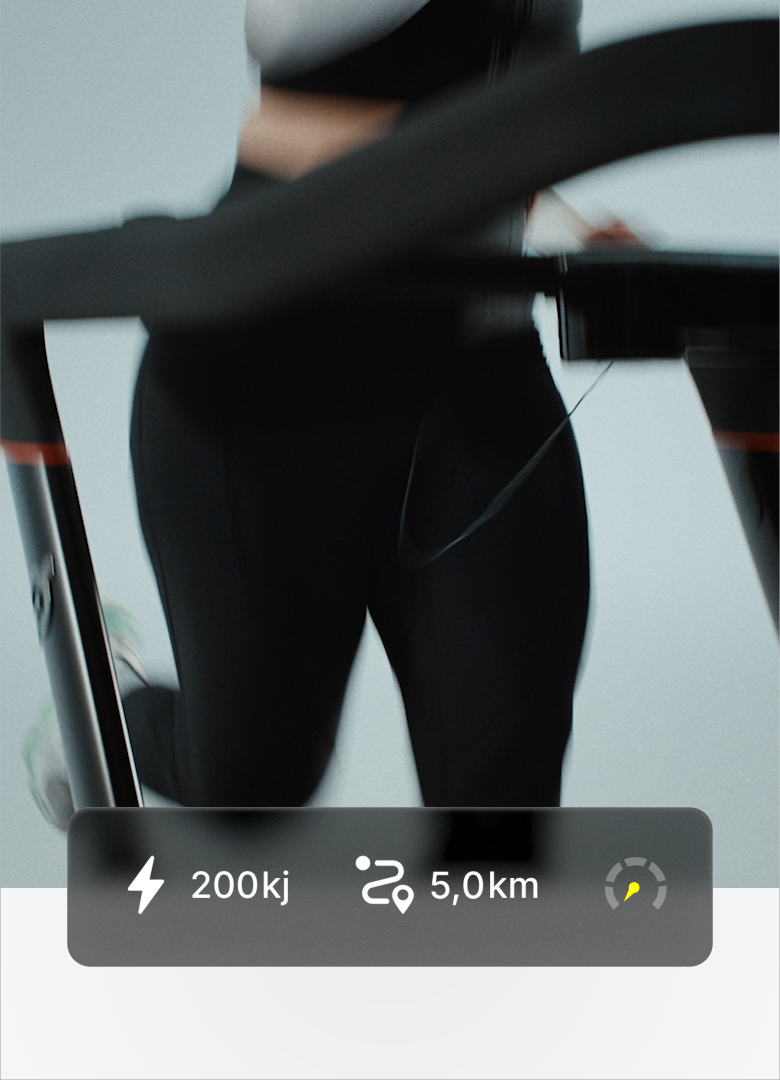 Halte dein Tempo, ohne etwas einzustellen. Die automatisch angepasste Steigung folgt mit einem Fingertipp den Vorgaben der Trainer:innen.