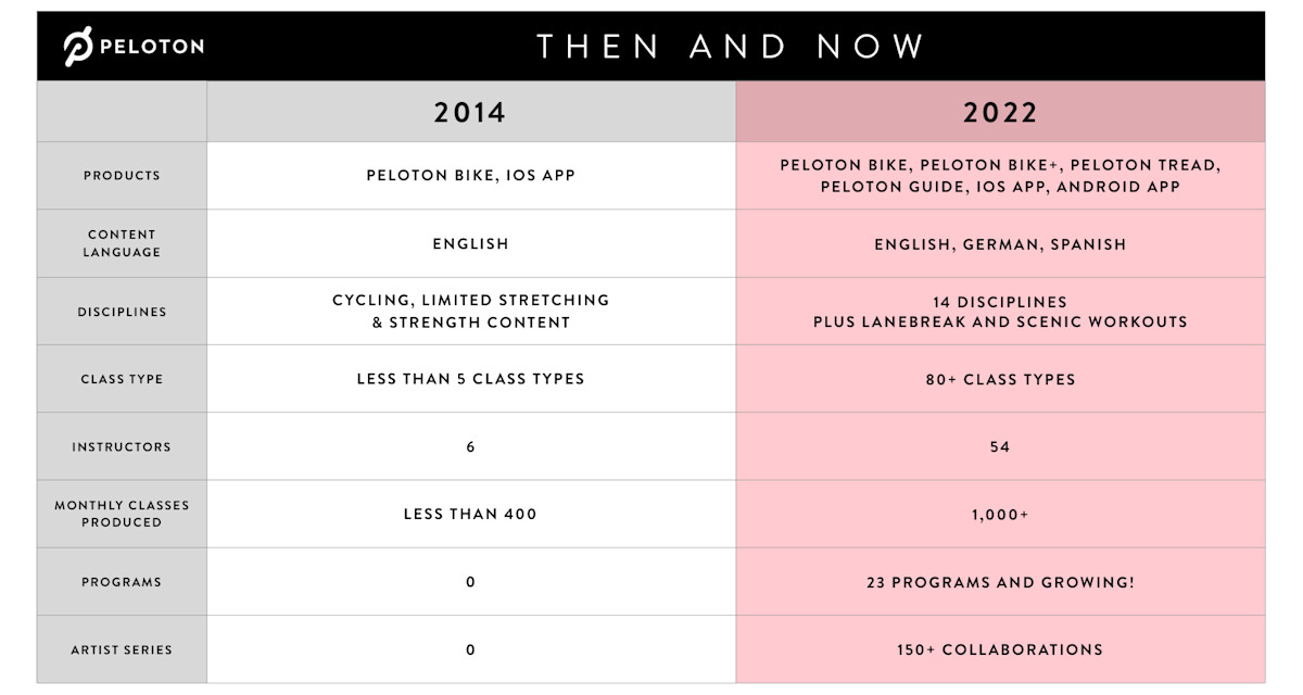 Second, we’re increasing the price of our all-access membership in North America after eight years without a price increase. During those eight years, we’ve made significant investments to improve the quality of the subscription experience. We've consistently added content, disciplines, music, instructors, and new features, across three products: the Peloton Bike, Tread and Guide. Our Members are also getting more out of their Membership: monthly workouts per All-Access Membership more than tripled from 4.4 in October-December 2014 to 15.5 in October-December 2021.